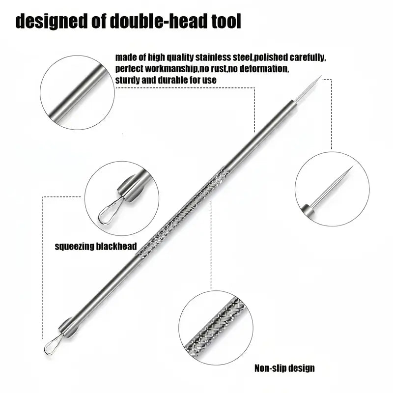 Achieve clear and healthy skin with this 10-piece professional pimple removal kit, designed for safe and effective extraction of blackheads, whiteheads, acne, and clogged pores.
