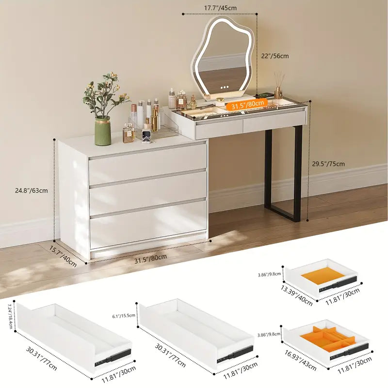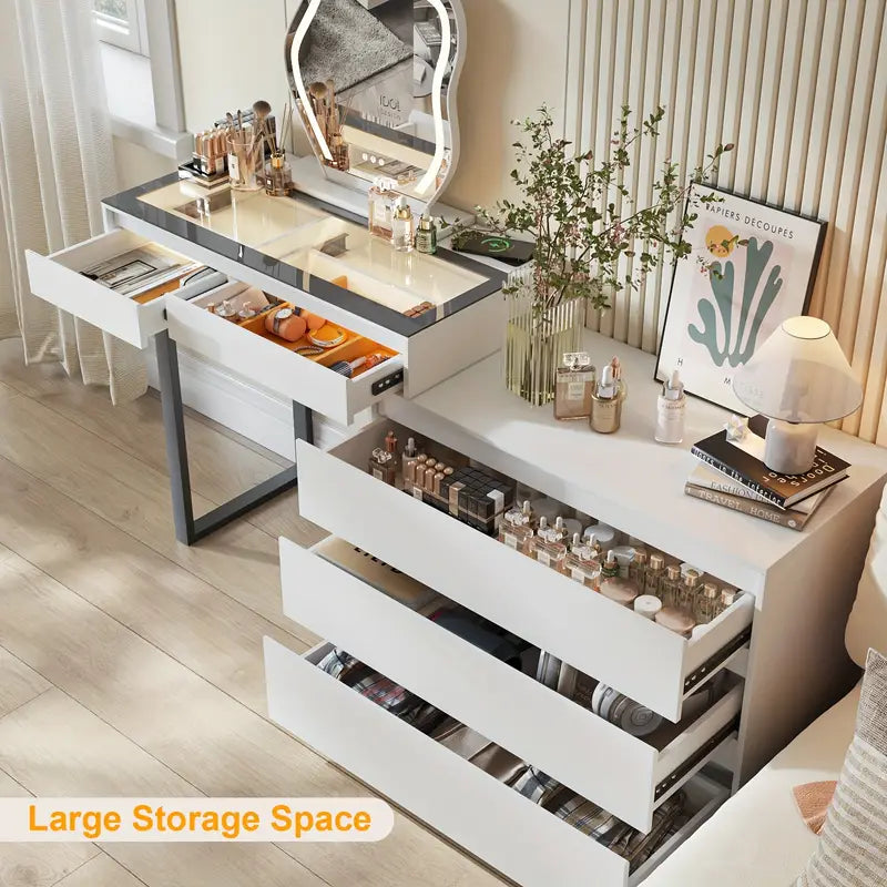 - Ample Storage Space – Includes 5 spacious drawers and jewelry storage shelves to keep everything organized.