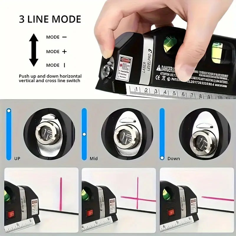 Three Laser Modes – Downward vertical, center cross, and horizontal alignment for versatile use.
